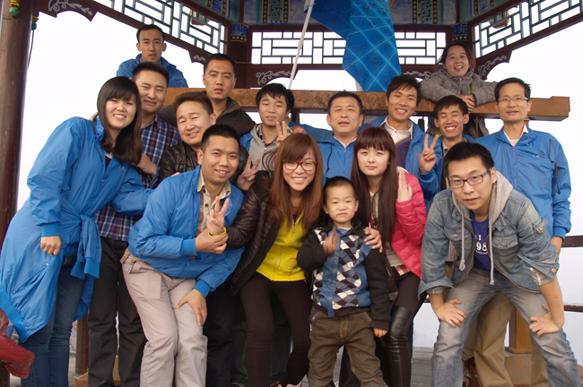 部分員工及家屬小孩攀登石林峽最高峰并合影