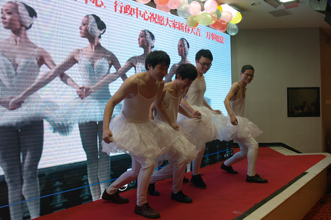運營中心員工白鴻雷、馮自帥、韓子博及行政中心王健合演天鵝舞