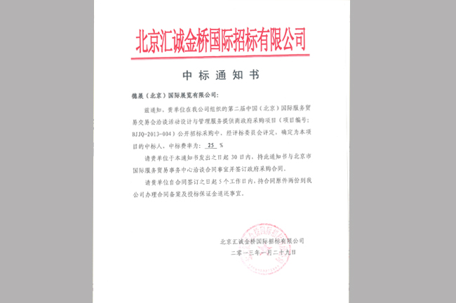 我集團中標第二屆京交會洽談活動設計與管理服務提供商政府采購項目/同時被授予:推薦搭建商