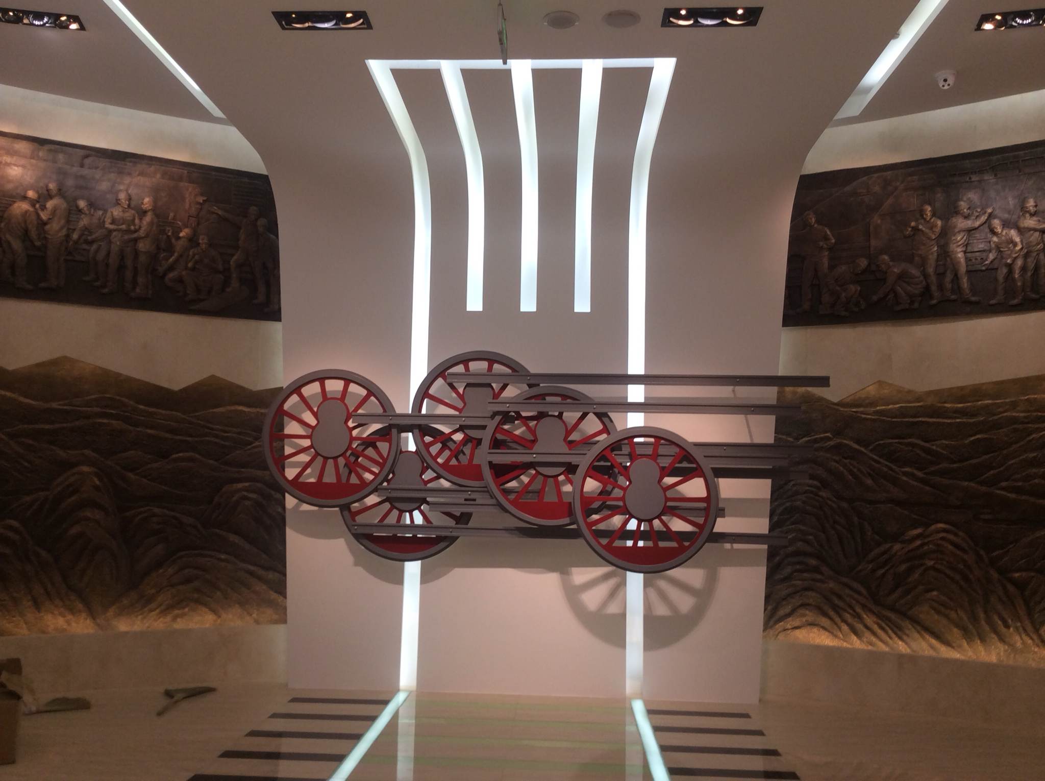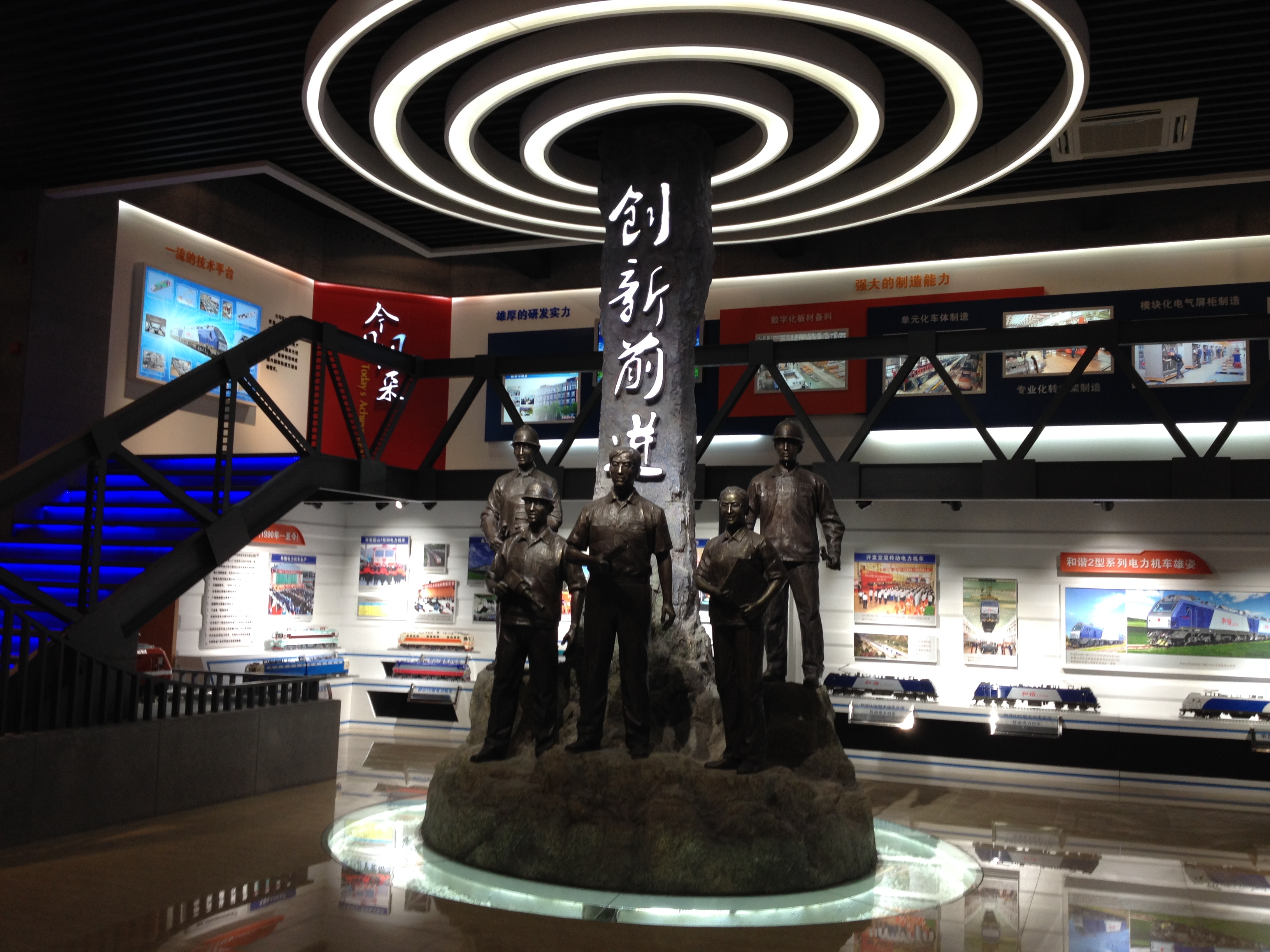 大同電力機車有限責任公司【廠史館】布展區(qū)域面積近1200平方米,以“塞上古城新動力﹒驅(qū)動中國夢前行”為主題。【廠史館】整體規(guī)劃設(shè)計部分包括:廠史館外立面裝飾設(shè)計、廠史館前小廣場及雕塑設(shè)計、廠史館及相關(guān)功能型會議廳規(guī)劃設(shè)計。在表現(xiàn)手段方面主要有圖片靜態(tài)展示,文字說明展示、視頻演示、浮雕墻、實物展示、雕塑、模型及動態(tài)沙盤、多媒體互動展示。主要分為序廳(展現(xiàn)活力與希望)、溫暖記憶(回望堅定與支持)、前進歷程(銘記那一份啟示與開拓)、今日風采(體現(xiàn)不止步的創(chuàng)造與奮進)、燦爛明天(展望企業(yè)未來的引領(lǐng)與卓越)、企業(yè)之魂(明晰企業(yè)的社會責任與精神主旨)六大部分重點展示。
