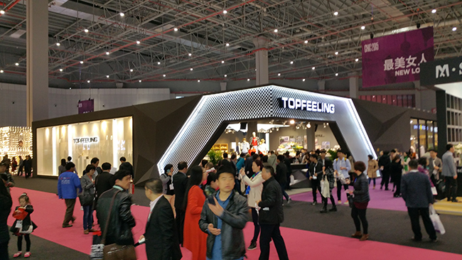 德展集團本此設計承建面積近1萬平方米,涵蓋各展館和品牌企業,其中承建5.1館B103愛慕集團旗下的寶迪威德、5.2館A213的TOPFEELING(750平方米)、6.1館的石獅展團(3000平方米)、6.2館的CHIC秀(2000平方米)及主辦方新增板塊“鏈接未來”備受矚目,德展集團項目團隊團結協作,不怕苦不怕累,精益求精的工作作風得到了參展商、主辦方的一致好評。