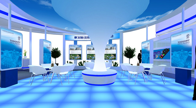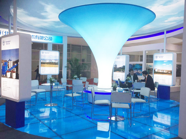 該展臺(tái)線條設(shè)計(jì)方中有圓,方是為人之本,是做人的脊梁;圓是成功之道,是處世的錦囊,傳遞著企業(yè)發(fā)展及為人之道。醒目的科技藍(lán)和LED大屏,彰顯出企業(yè)的科技與實(shí)力。醒目通透的燈箱圖片,恰當(dāng)?shù)娜肆髀肪€,綠色環(huán)保的洽談氛圍,芝麻開(kāi)花節(jié)節(jié)高的發(fā)光軟膜花瓣,給人耳目一新之快感。