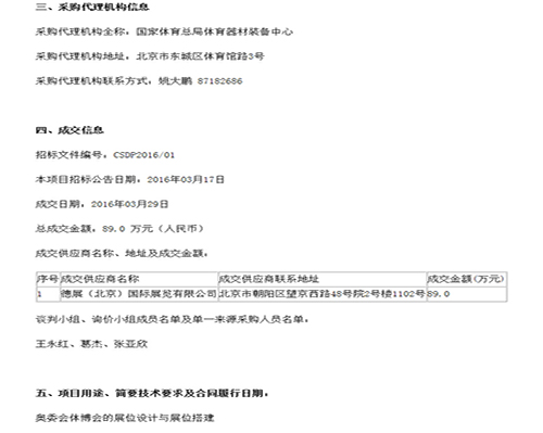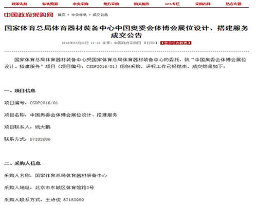 ? ? ? ?3月29日,國(guó)家體育總局體育器材裝備中心“中國(guó)奧委會(huì)體博會(huì)展位設(shè)計(jì)搭建服務(wù)”項(xiàng)目(編號(hào)CSDP2016/01)組織采購(gòu)、評(píng)標(biāo)工作結(jié)束,德展集團(tuán)憑借專業(yè)的精神、創(chuàng)意的策劃、融情的設(shè)計(jì)、品質(zhì)的保證,再次贏得了評(píng)委的信任與認(rèn)可,榮耀地成為連續(xù)三年為中國(guó)奧委會(huì)傾情服務(wù)的供應(yīng)商!